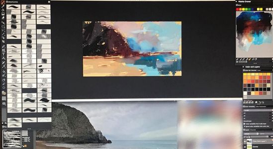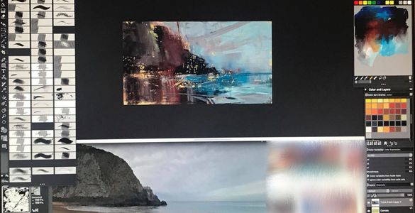 The world is constantly in motion; vibrating and ever changing. As such, I've been taking a semi-abstract approach to my painting techniques in recent years. Notably a build and destroy, and rebuild approach. I enjoy the energy and life of the paint marks that cut across the canvas. Like a dream, there's a sense of shifting reality. Over the years, Corel Painter has become my tool of choice as it mimics real paint exceptionally well. Here are some tips on achieving a similar look in Painter, and an example of my process: